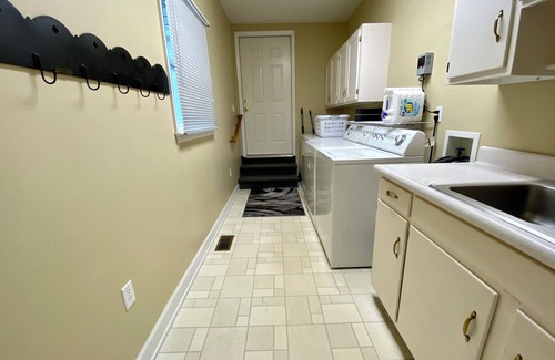 There is also a large laundry room with washer and dryer and space to hang wet lake towels and swimwear.